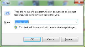 - Tekan tombol Windows + R atau klik Run lalu ketik “services.msc”